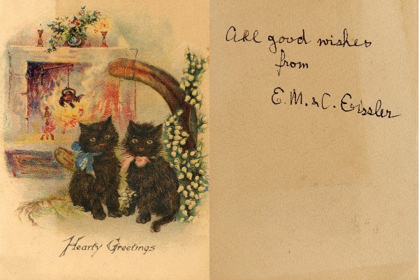 Carte de vœux adressée à Miss Cartier de la part des sœurs Eissler (Emmy, Marianne et Clara),