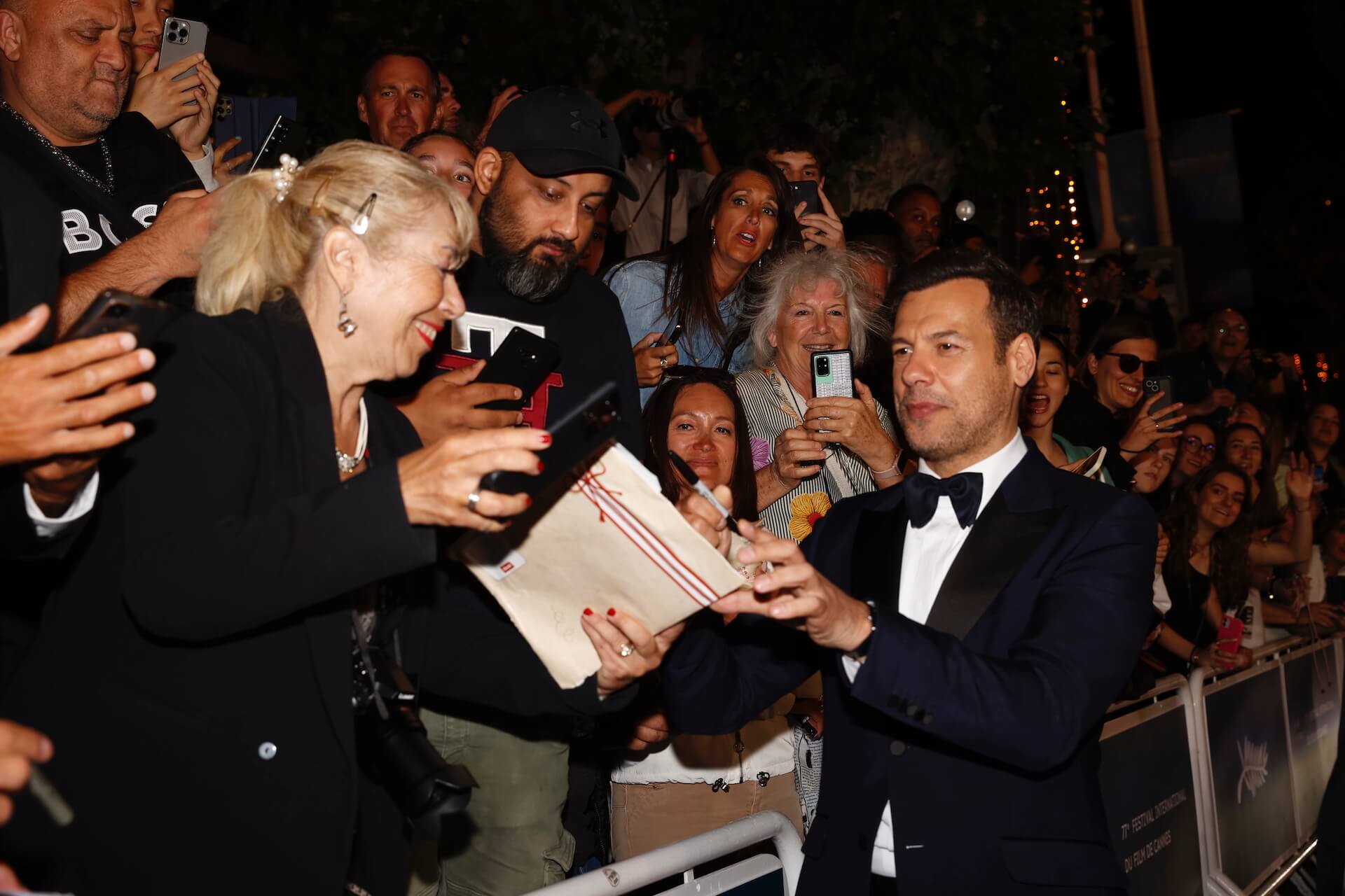 Laurent Lafitte takes photos and signs autographs at the premiere of the film The Count of Monte Cristo.