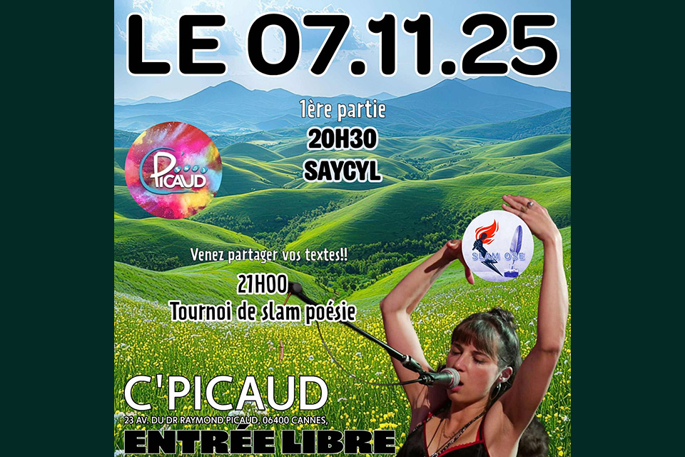Soirée slam avec Saycyl en première partie, suivie du tournoi de slam poésie. Le slam est une forme de poésie libre et orale qui est rythmée.