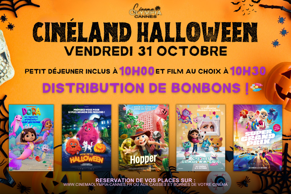 Un petit-déjeuner à 10h, suivie de la projection du film de ton choix parmi Dora et la cité arc-en-ciel, Mon Petit Halloween, Hopper et le Hamster des ténèbres, Gaby et la maison magique et Super Grand Prix.