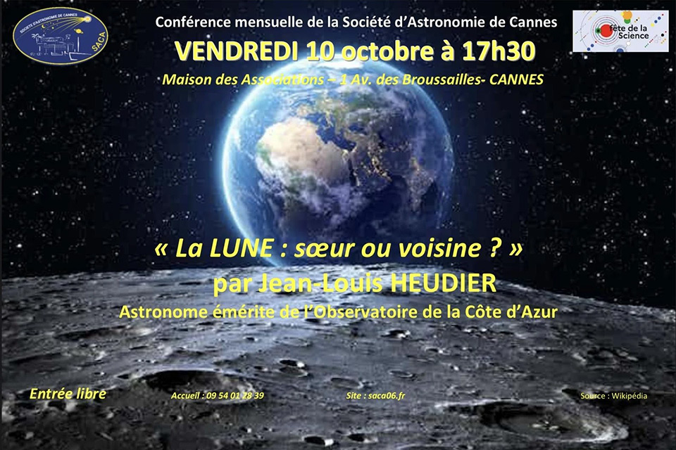 Conférence, organisée dans le cadre de la Fête de la Science, animée par Jean-Louis Heudier, astronome émérite de l'Observatoire de la Côte d'Azur.