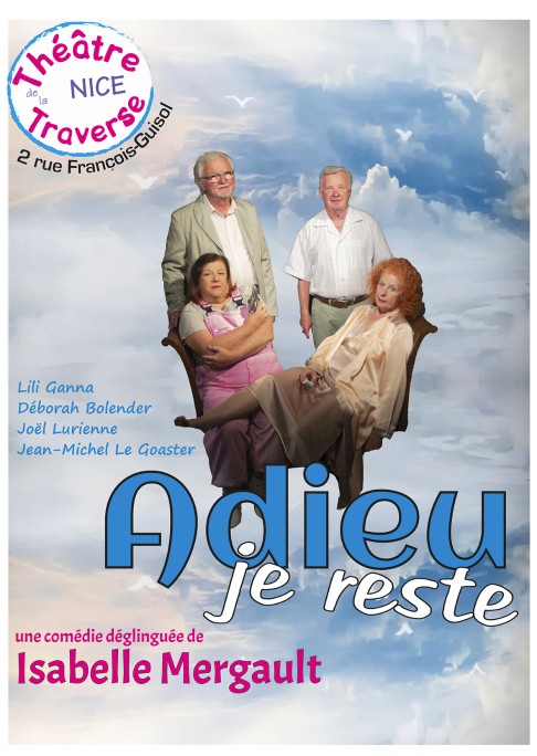 La pièce "Adieu, je reste!" d'Isabelle Mergault raconte l'histoire de Jean-Charles, un artiste-peintre oisif qui veut s'approprier la fortune de sa femme Barbara, une romancière célèbre et riche.