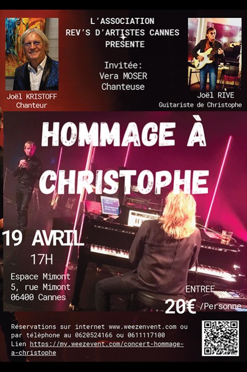 Concert en hommage au chanteur Christophe disparu en avril 2020. Ce concert rassemblera sur scène Joël Kristoff, chanteur antibois connu sur la côte d'Azur et Joël Rive, guitariste de Christophe en début de carrière devenu par la suite jockey ayant gagné des courses notamment à Cagnes-sur-mer. Joël Rive est également compositeur et musicien du groupe les Boots dans les années 60 et accompagné Eric Charden et d'autres artistes.