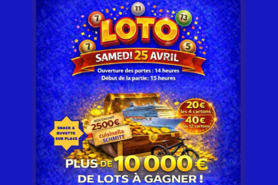 Loto caritatif, organisé au profit du service de cancérologie et de pédiatrie de l’Hôpital de Cannes avec plus de 10 000 € de lots à gagner : séjour d’une semaine pour 4 personnes, croisière d'un montant de 700 €, plus de 4000 € chez Cuisinella et Schmitt, 2 VTT Marins adultes et enfants et beaucoup d’autres lots.