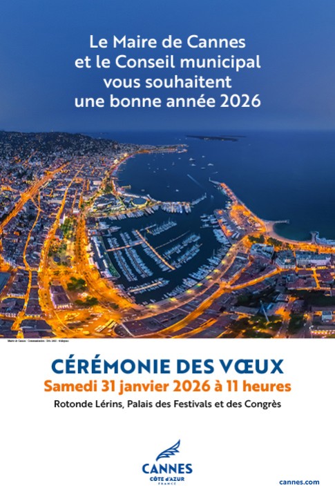Le Maire de Cannes et le Conseil municipal vous adressent leurs meilleurs vœux 2026 et vous convient à la traditionnelle cérémonie des vœux à la Rotonde Lérins du Palais des festivals et des congrès.