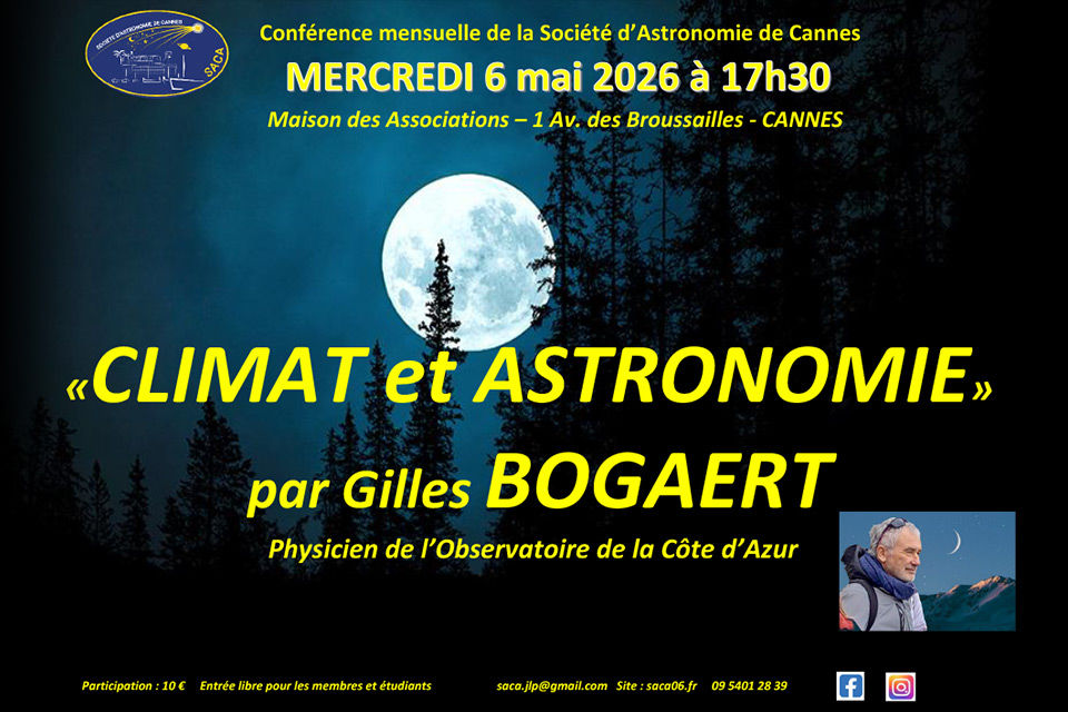 Le conférencier Gilles BOGAERT, Astrophysicien à l'Observatoire de la Côte d'Azur, présentera CLIMAT et ASTRONOMIE.