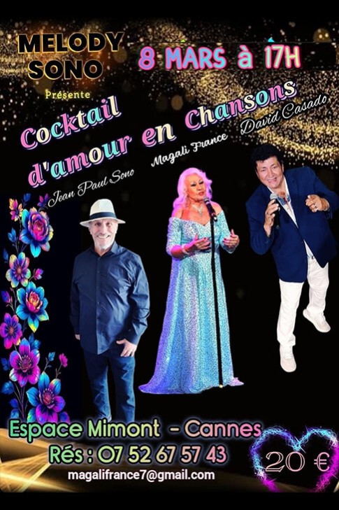Récital de chansons d'amour avec des variétés et opérettes de différents répertoires : David Casado, Johnny Hallyday, Chico & The Gypsies, Vincent Niclo, Luz Casal, Elvis Presley, Eddy Mitchell, Andréa Bocelli, Charles Aznavour, Michel Delpech, Boby Solo, Philippe Clay, Georges Guétary, Luis Mariano, Tino Rossi, Paulette Merval & Marcel Merkes, Maria Callas.
