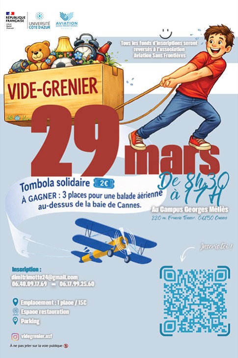 Vide-grenier solidaire dont l’ensemble des fonds récoltés sera intégralement reversé à l’association Aviation Sans Frontières.