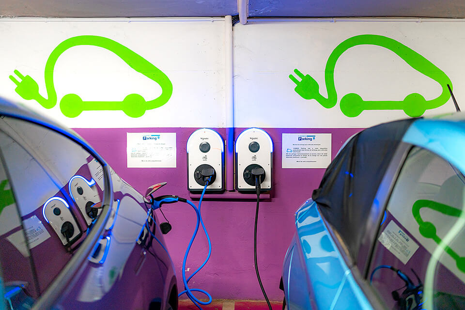 97 bornes de recharge sont disponibles en libre-service à Cannes, réparties dans plusieurs parkings gérés par CANNES Parking.
