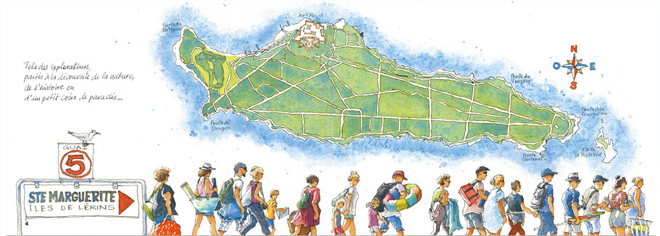 « Mon carnet de voyage vous fait partager ma vision lumineuse et colorée des îles de Lérins. Je vous encourage à trouver la vôtre, prenez le temps de regarder, d'écouter, de sentir et d'aller à la rencontre des autres. »