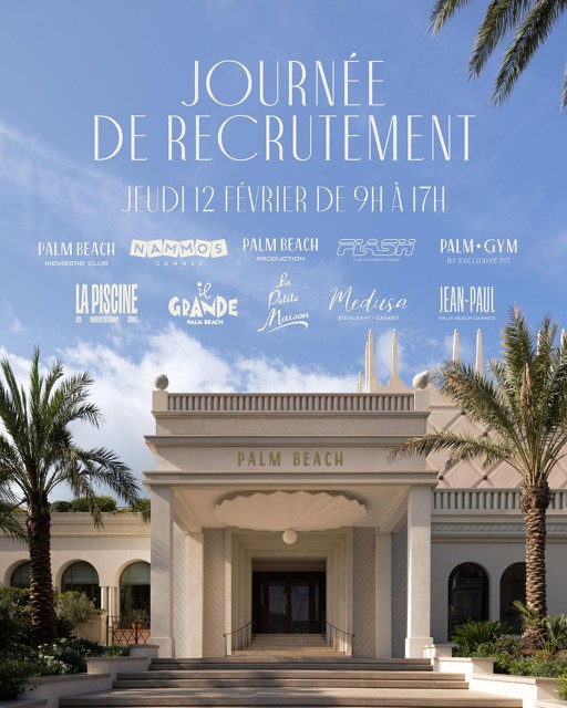 Plus d'infos : https://linktr.ee/palmbeachcannes - recrutement@palmbeach-cannes.com