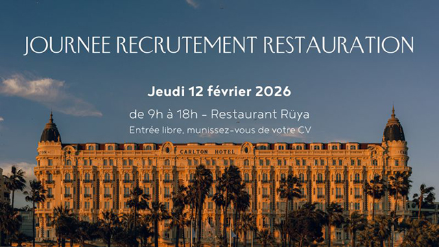 Le Carlton organise jeudi 12 février de 9h à 18h, au sein du Restaurant Rüya, une journée de recrutement dédiée aux métiers de la restauration.