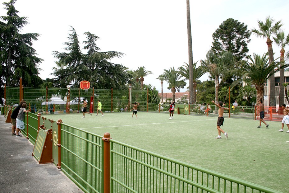 Le city stade avec un revêtement synthétique pour la pratique du football et du basket-ball.