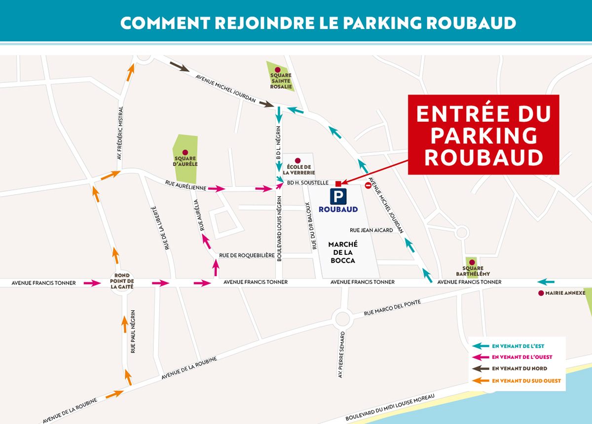 Ce parking, géré par CANNES Parking, est situé à proximité du marché de La Bocca.